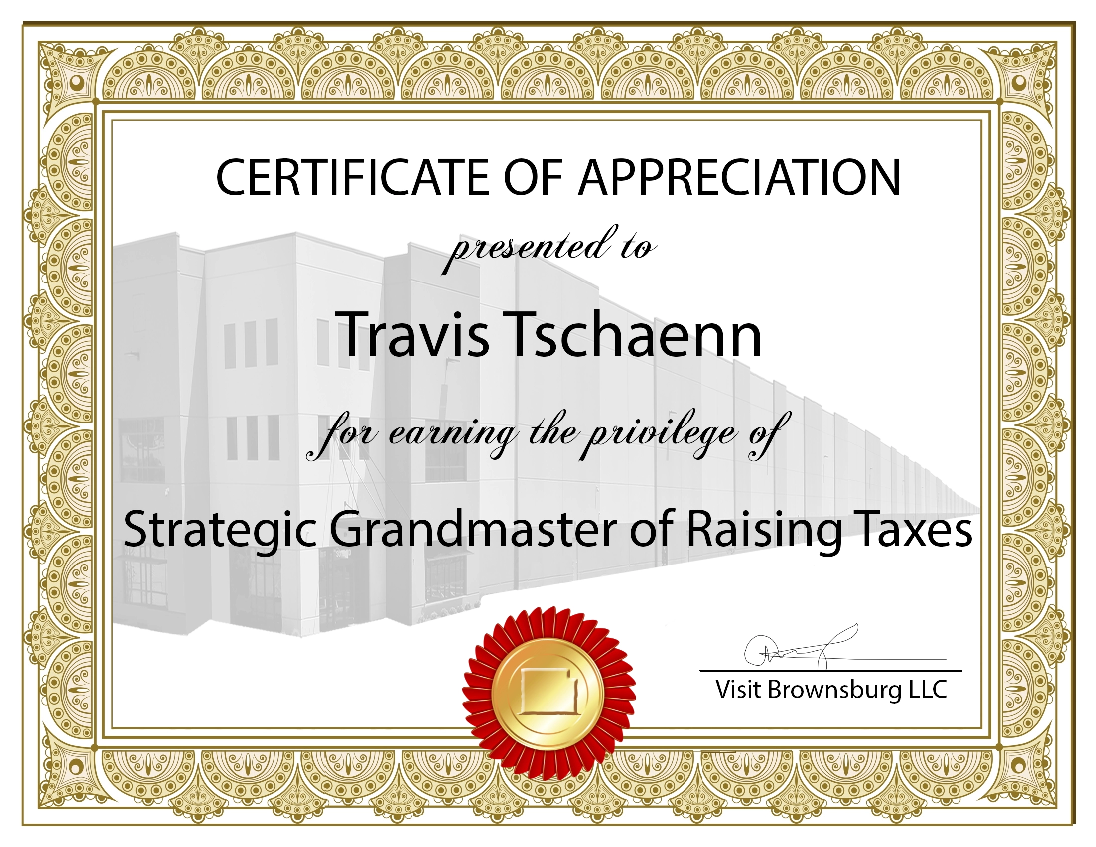 Your enthusiasm for more tax revenue has grown well beyond the 3% development Vision, as evidenced by your leadership in increasing taxes for local residents in multiple ways this year alone. As Brownsburg Fire Territory Board President, you led them in instituting a 164% tax increase on all Brown and Lincoln Township residents for fire services to maintain their current budgets. Why? Because the Town government has absorbed their 45% claim of the Local Income Tax base. You seem happy to sacrifice the reputation of Brownsburg Fire Territory to gain the advantage over their $3.6 million dollar annual tax revenue fund. Brilliant move, Mr. President(s)! And your "take, take, take" gambits have been so aggressive that you are currently being sued by IAFF Local 4406 for not paying proper overtime wages for over 60 firefighters. But even that does not seem to satiate your ambition as you continue your strategic attack for more tax revenue. As President of Town Council, you have now capitalized on your position by increasing local property taxes for residents by an additional 4-5%. Check and mate! Truly, congratulations on your well-calculated success towards the Vision for more tax revenue! And also for not getting recalled.